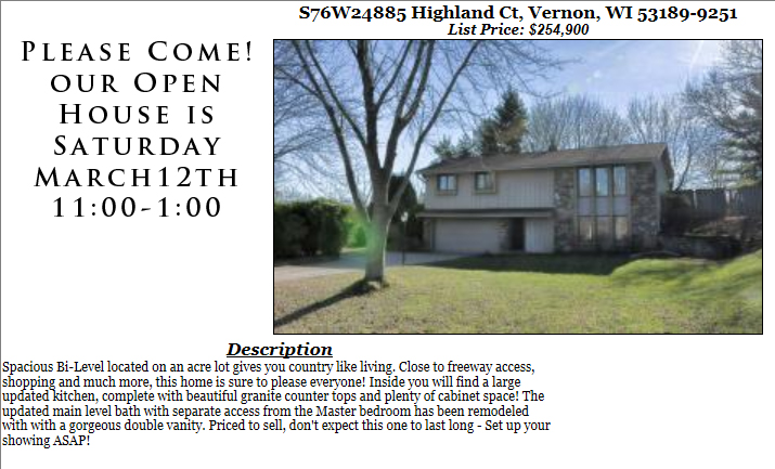 Open Houses Sunday March 6th