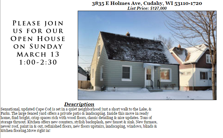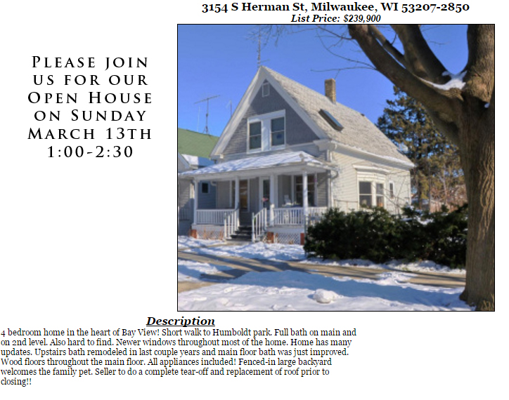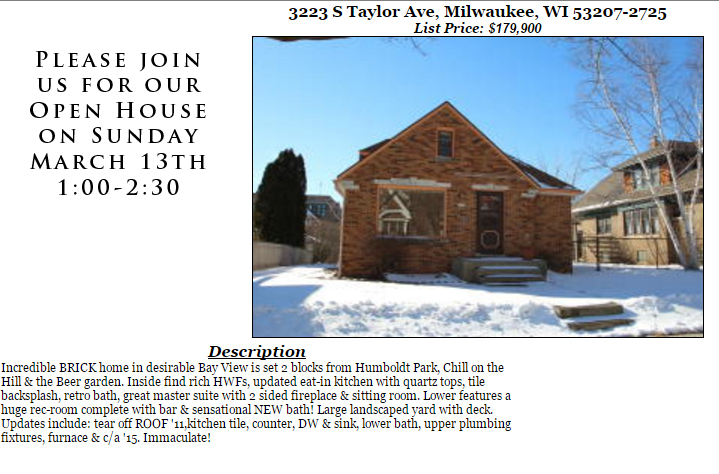 Open Houses Sunday March 13th