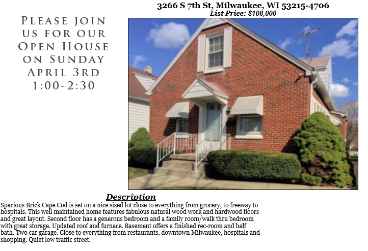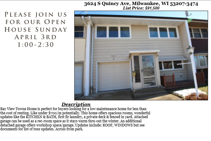 Open Houses Sunday April 3rd