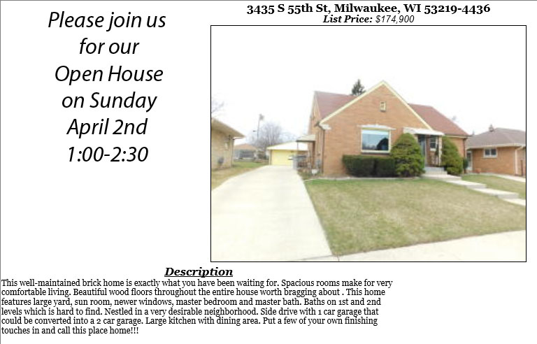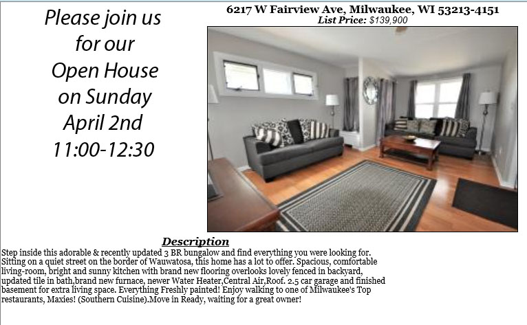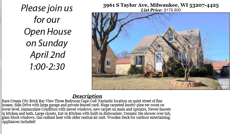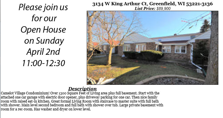 Open Houses Sunday April 2nd